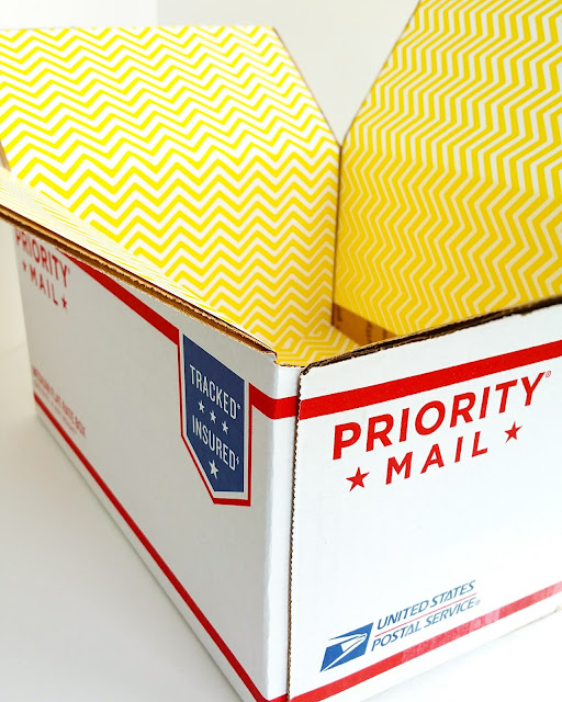 i lined the inside of the box with some bright yellow paper & double sided tape