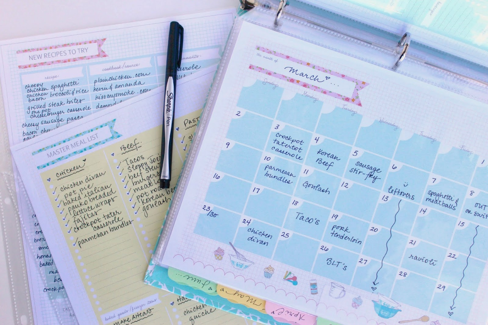 along with the shopping list & the week at a glance page (from the meal plan kit)